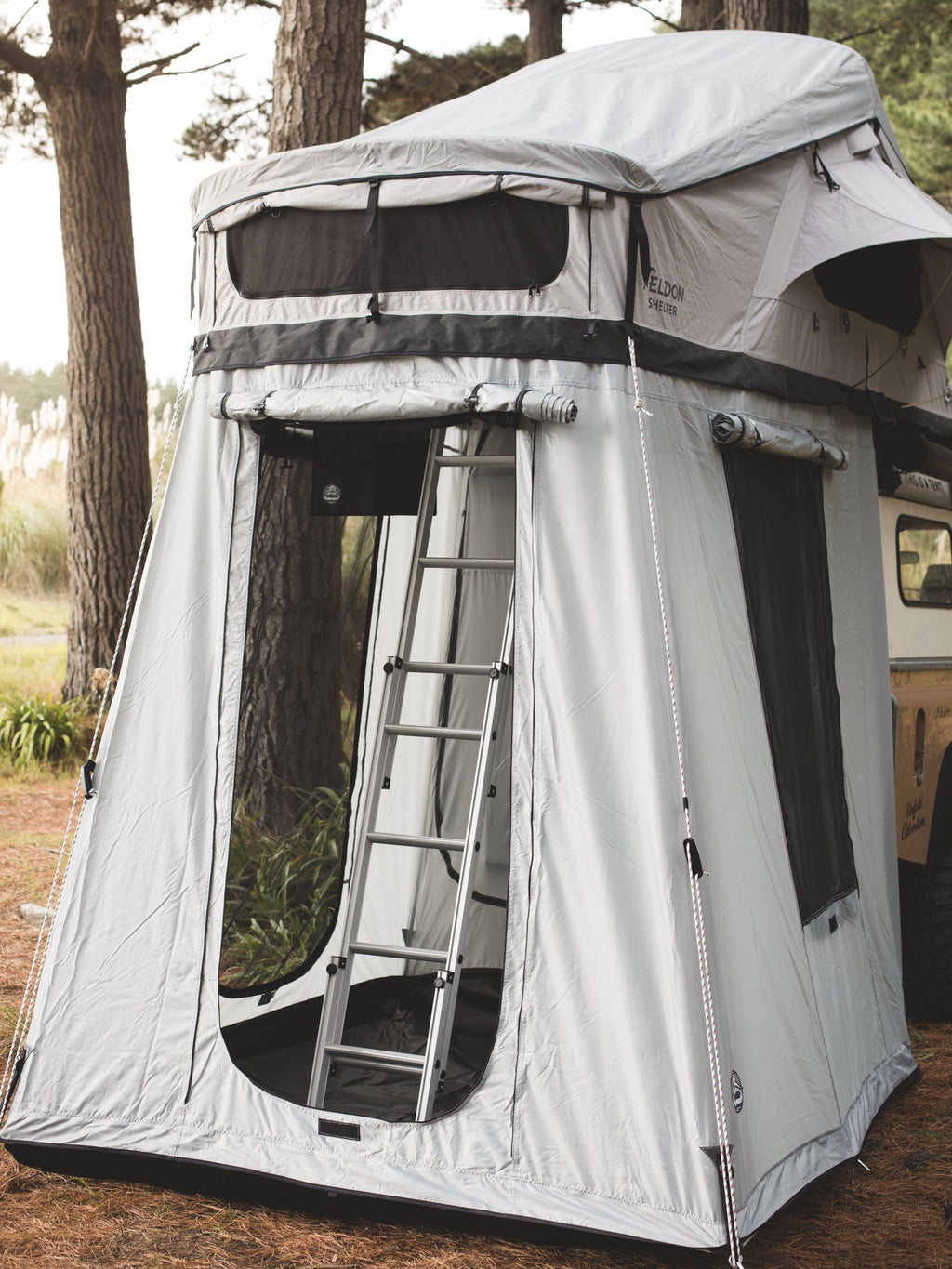 Turn the space under your Crow's Nest Rooftop Tent into a Bonus Room with our spacious lower annex attachment.