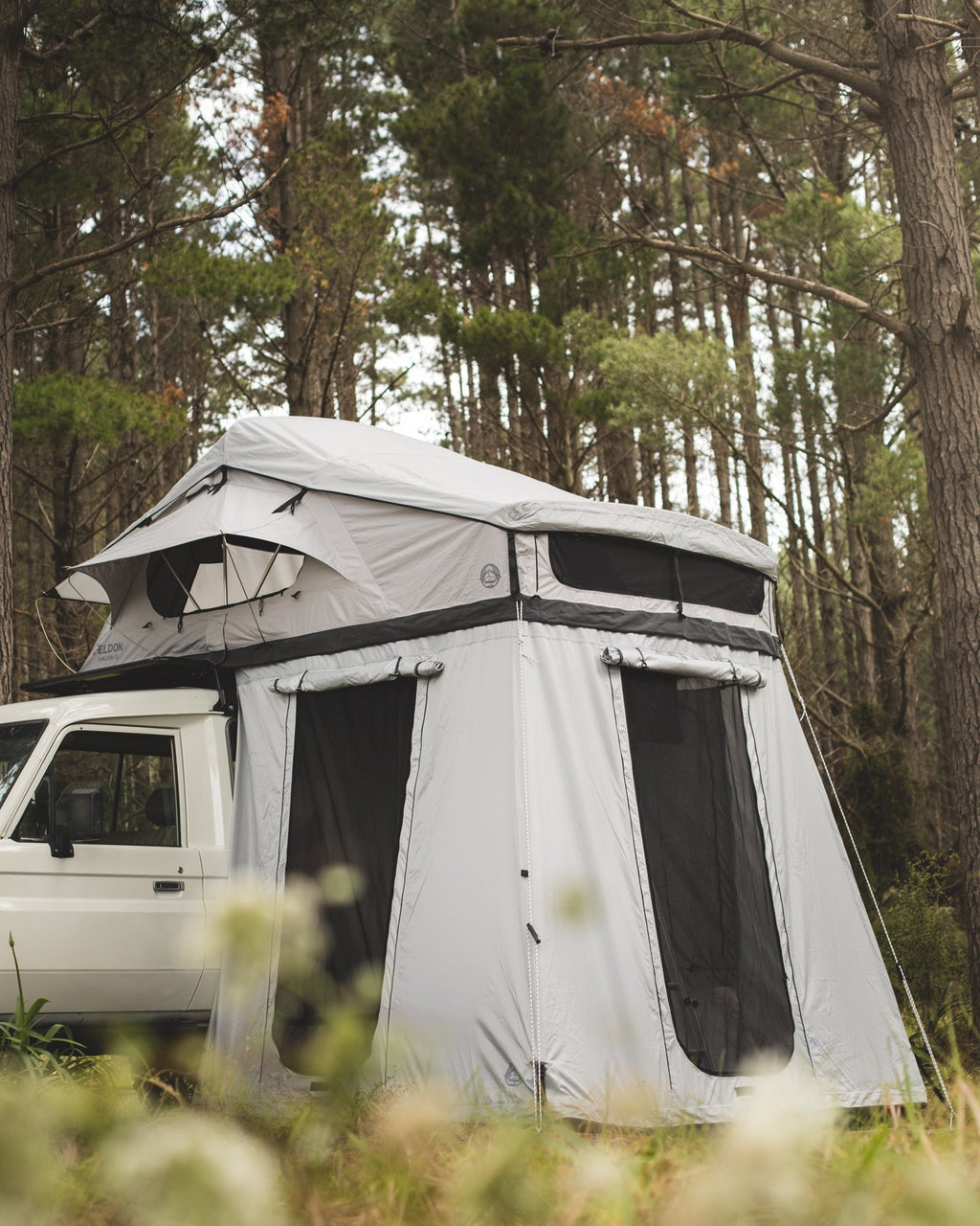 This bundle includes both a Crow's Nest Family Rooftop Tent + Bonus Room add-on!